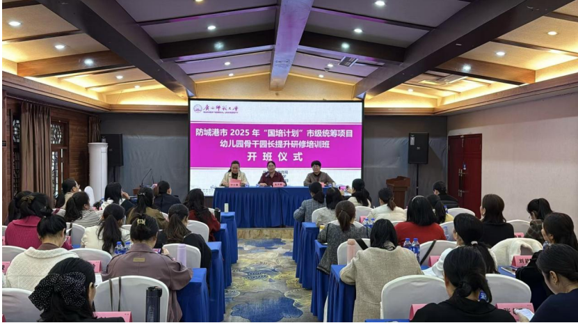 为提升幼儿园管理水平与保教质量,助推学前教育高质量发展,2025年11月3日,防城港市2025年“国培计划”市级统筹项目——幼儿园骨干园长提升研修培训班在“全国学习型城市建设标杆样板”成都市正式开班。防城港市教师培训中心负责人、市幼儿园学科中心组组长、学前教研员张开颜,广西师范大学继续教育学院副院长李敏,上思县第二幼儿园园长宁小春出席开班仪式,来自防城港市各县区的50名幼儿园骨干园长参加本次研修。